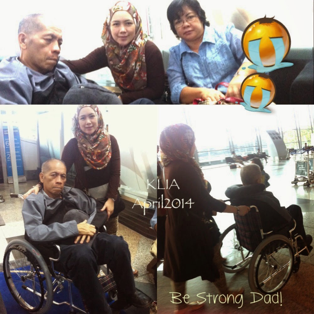 Seawal pagi jam 0330 ( 14hb April 2014 ) menangis sambil cari tiket flight online kat laptop. Hati tak tenteram sebab transaction failed. Terus packing barang ala kadar, kejutkan anak anak dan bergegas ke KLIA. Suami memandu kereta & park kereta kat KLIA juga. Tiada masa untuk menelefon taxi masa tu.
